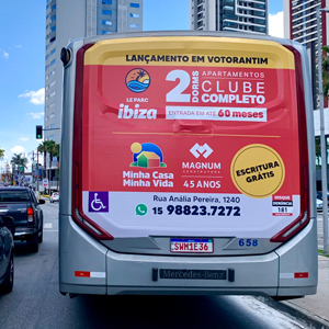 Você escolhe as cidades, as linhas desejadas e o número de ônibus que se adequa a sua campanha. Os contratos são mensais, podendo incluir impressão ou não. A arte é responsabilidade do cliente.